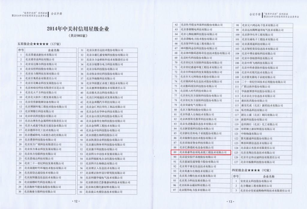 我公司榮獲2014年中關(guān)村信用五星級(jí)企業(yè)