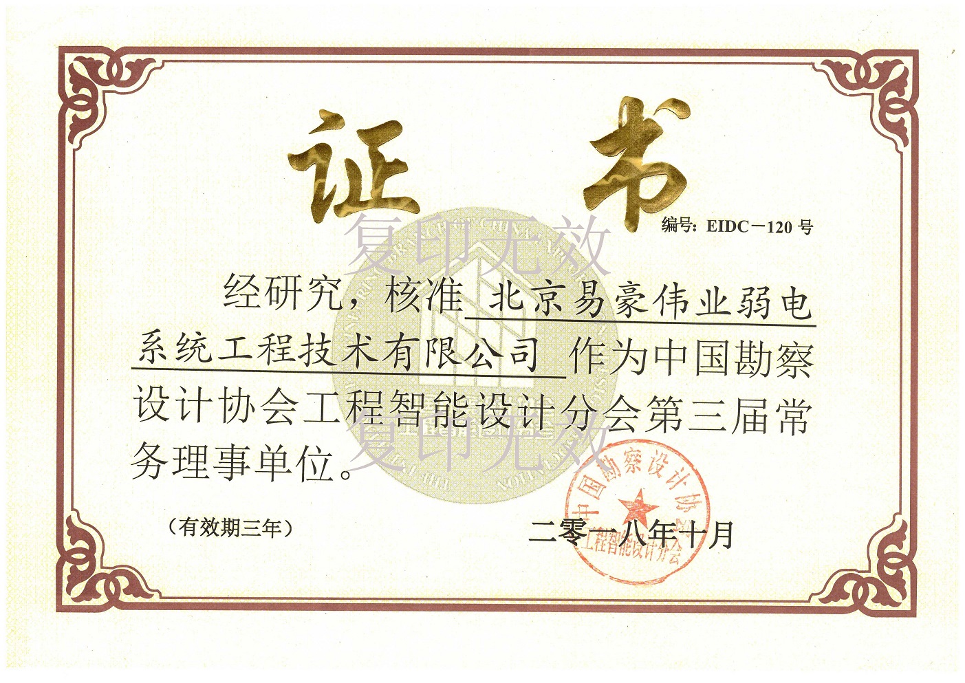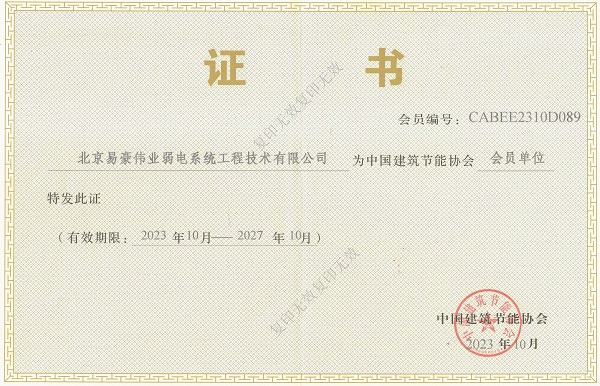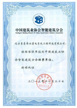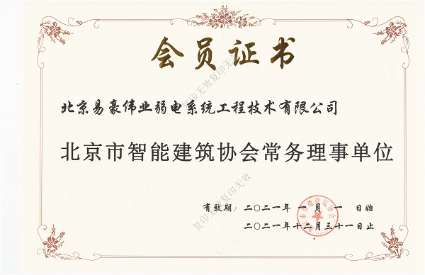 北京市智能建筑協(xié)會常務(wù)理事單位證書