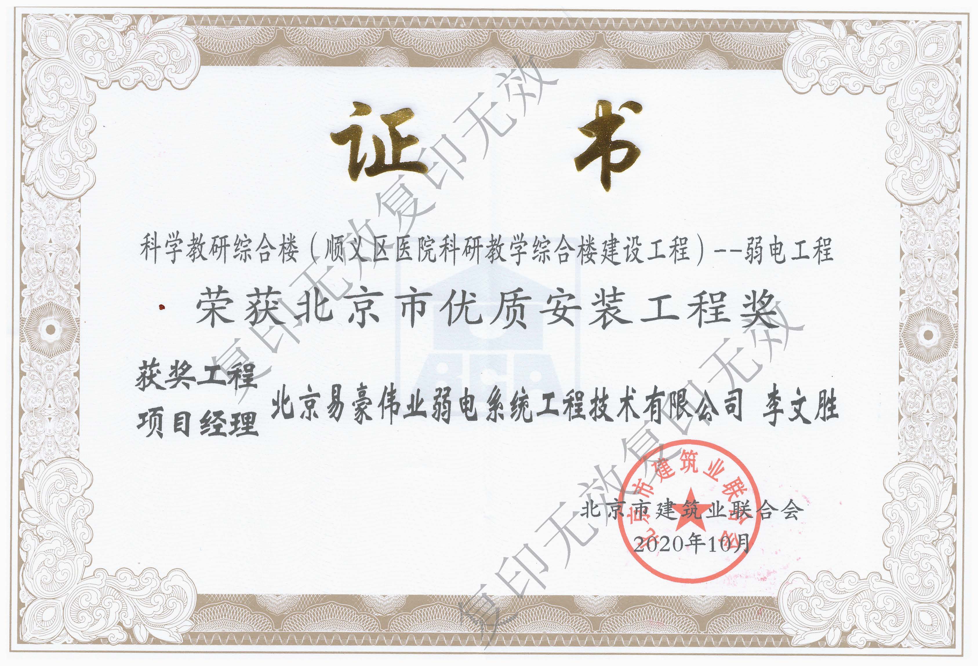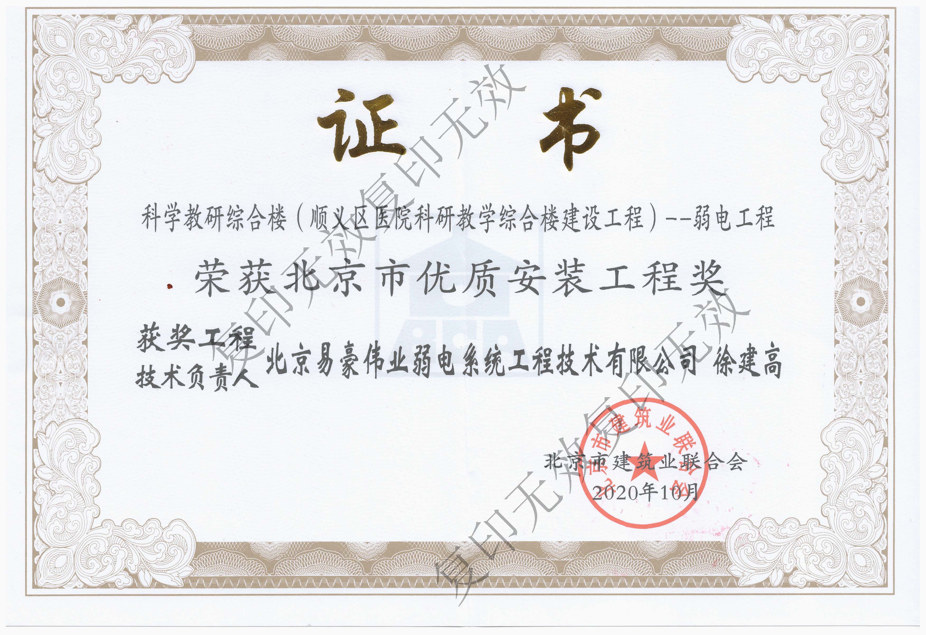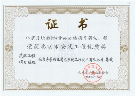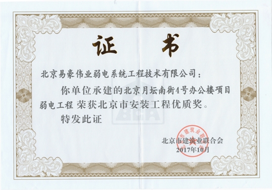 北京市安裝工程優(yōu)質(zhì)獎(jiǎng)