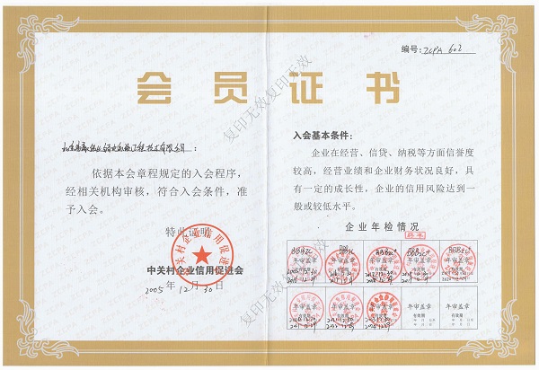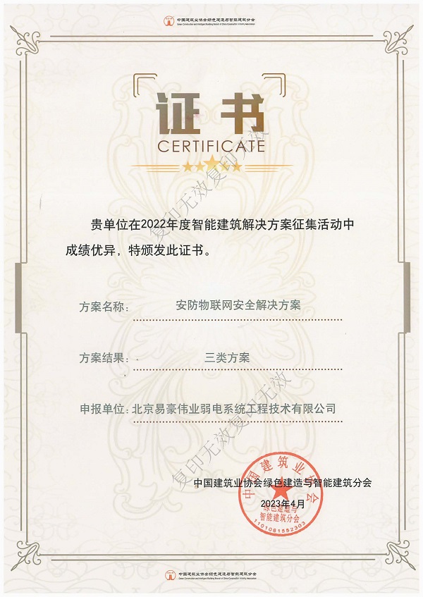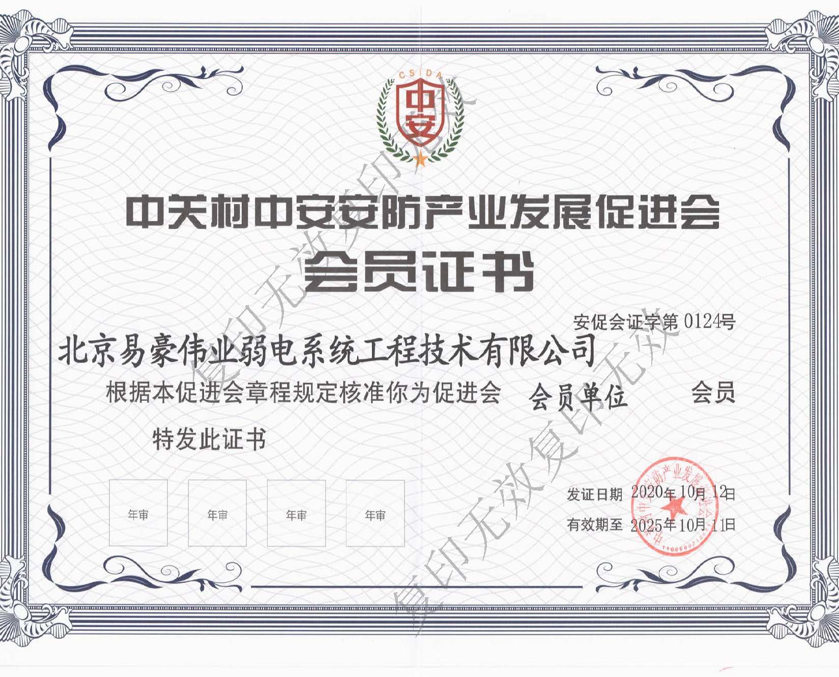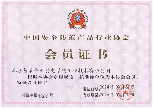 北京安全防范行業(yè)協(xié)會會員證書