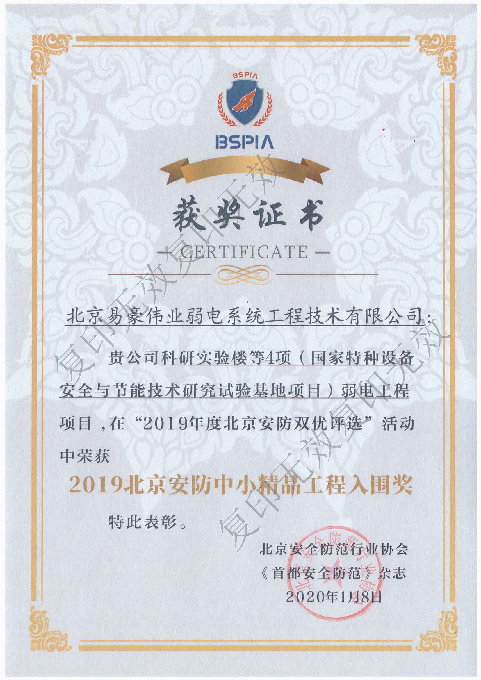 2019北京安防中小精品工程入圍獎(jiǎng)