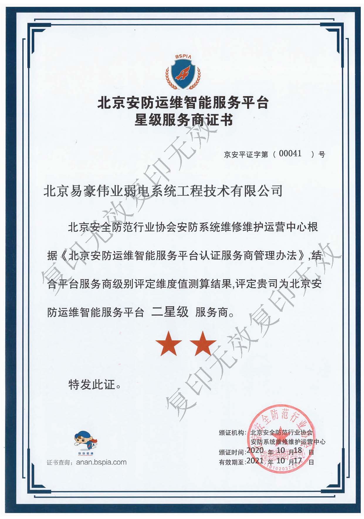 北京安防運(yùn)維智能服務(wù)平臺二星級服務(wù)商