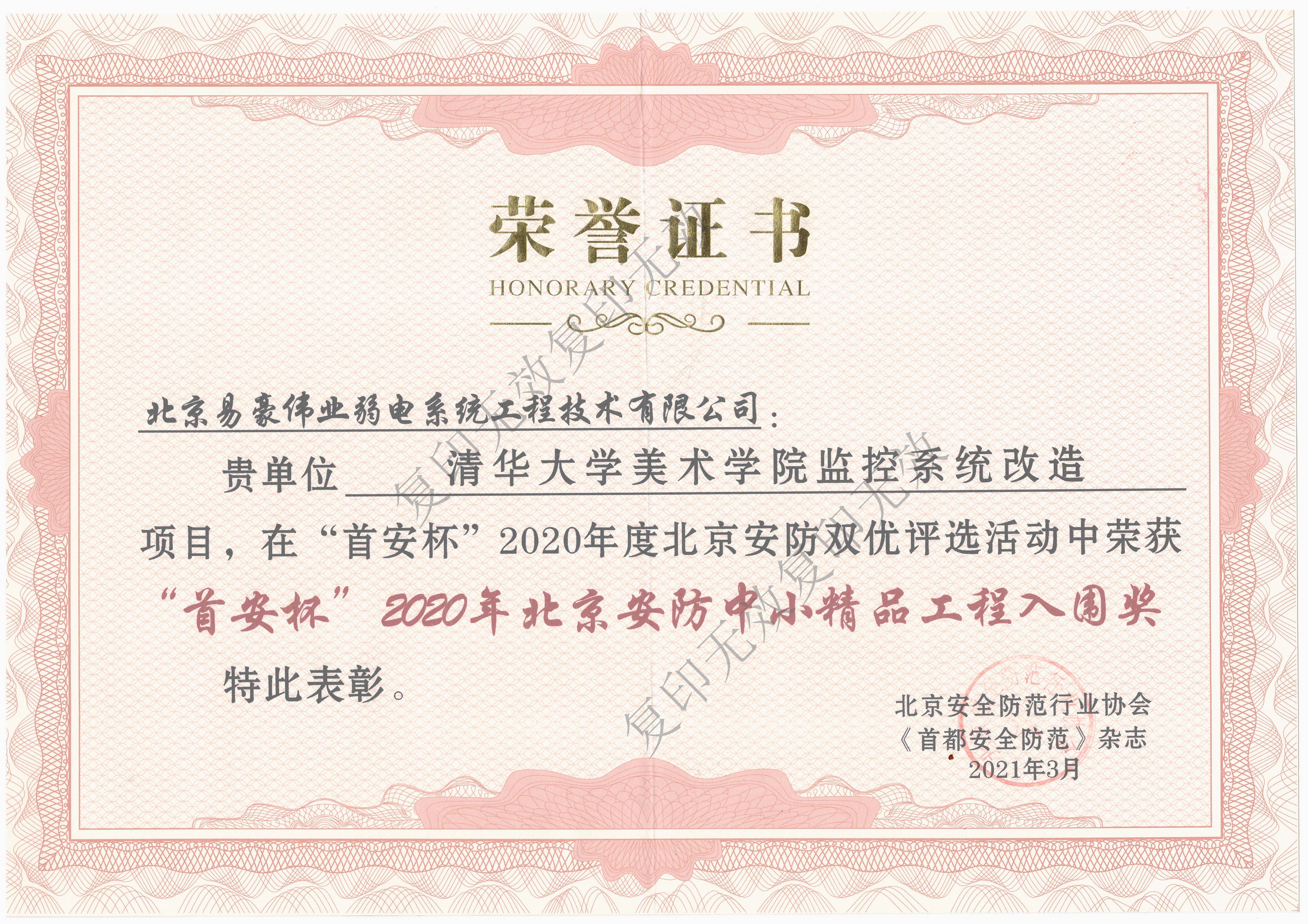 2020年北京安防中小精品工程入圍獎(jiǎng)