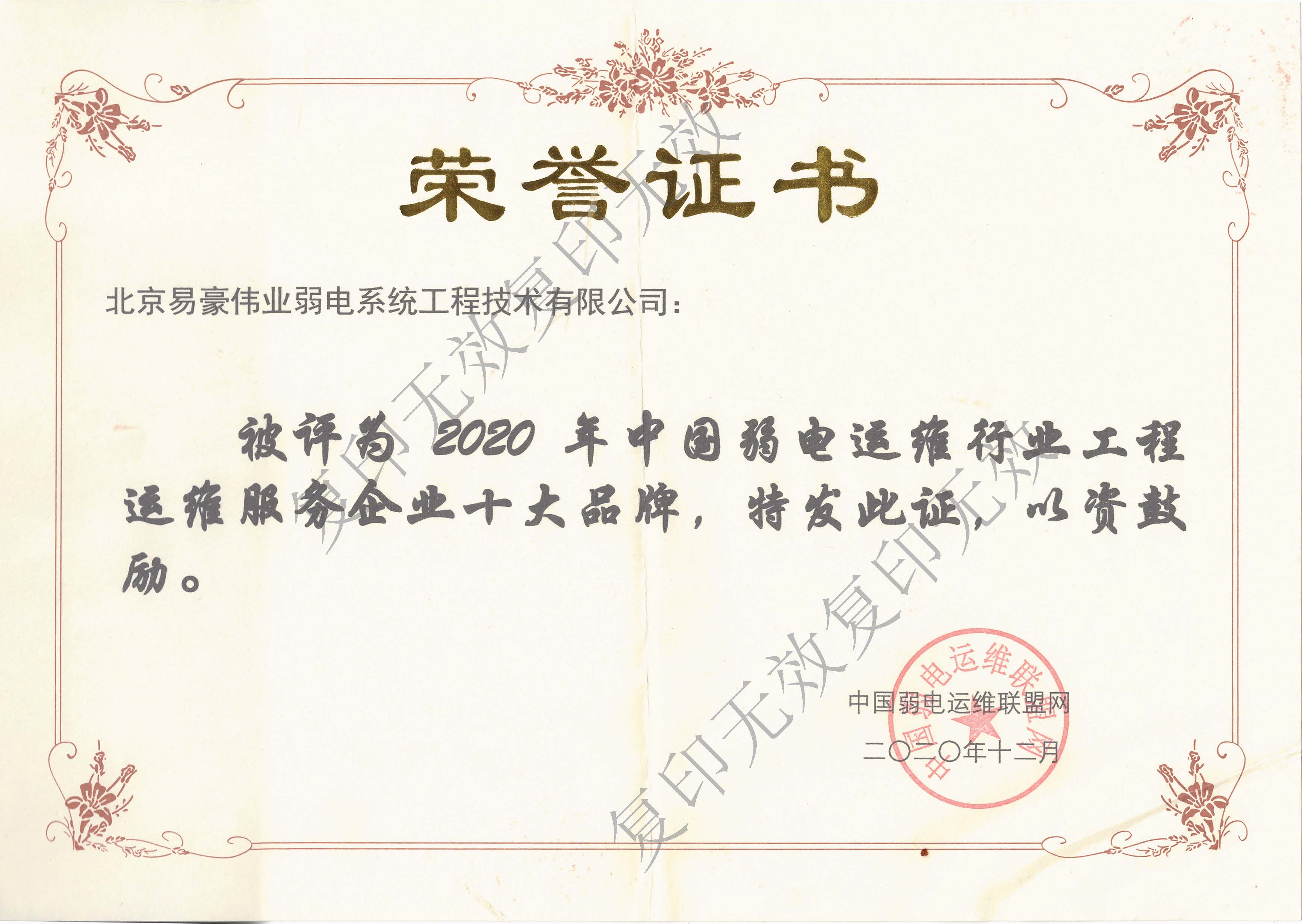 2020年中國弱電運(yùn)維行業(yè)工程運(yùn)維服務(wù)企業(yè)十大品牌