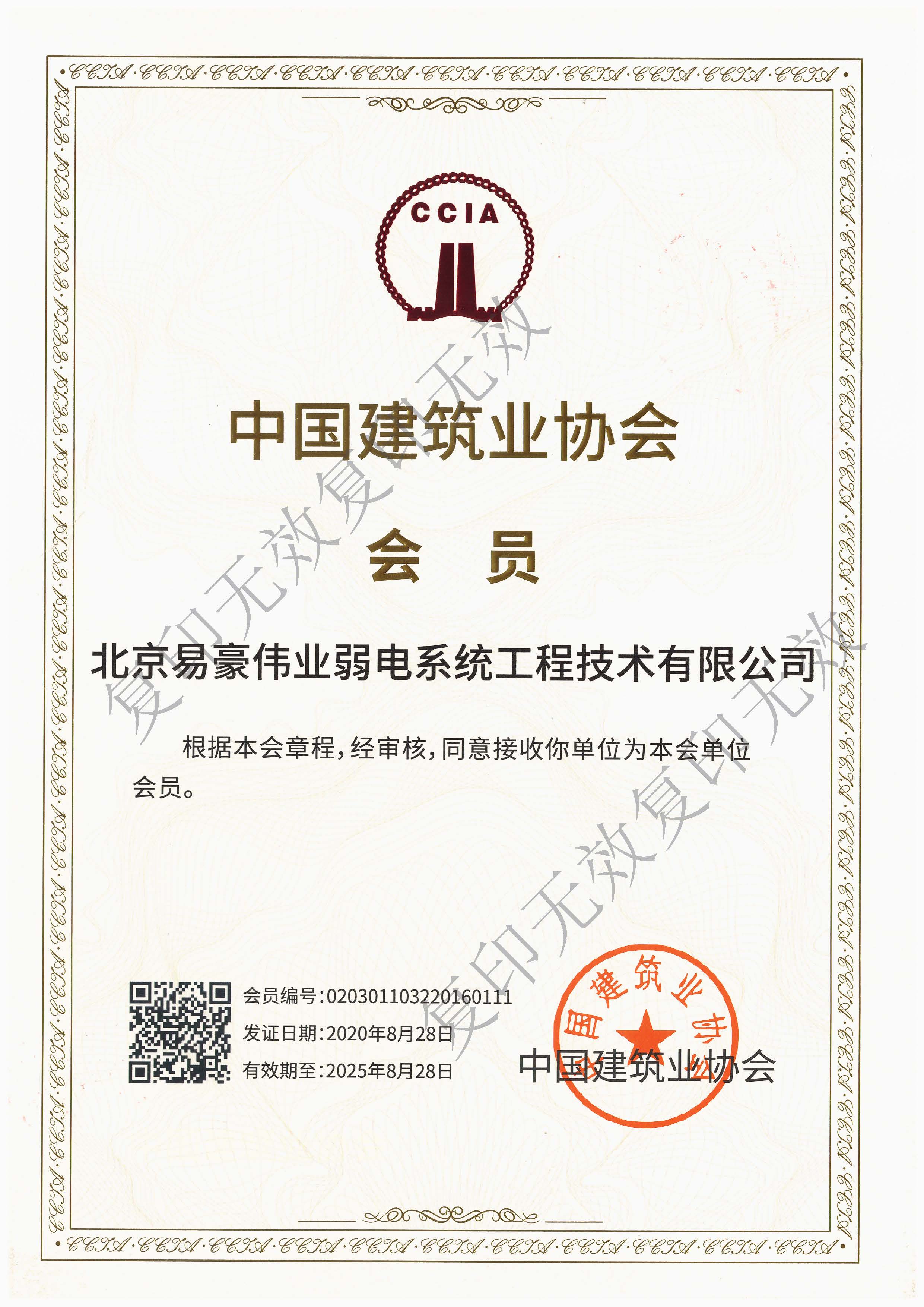 中國建筑業(yè)協(xié)會會員單位證書