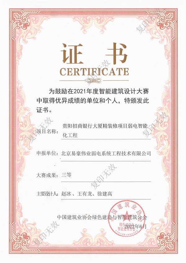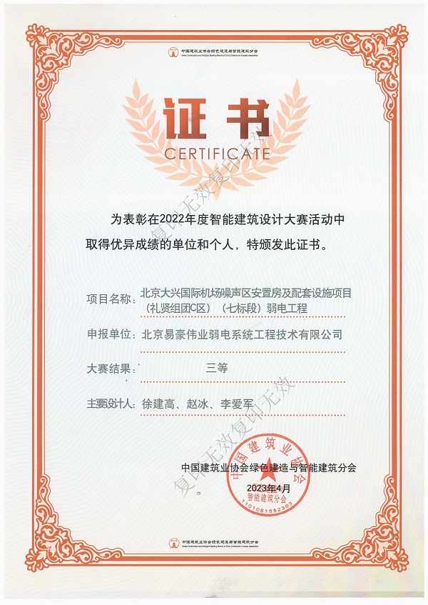 智能建筑設(shè)計(jì)大賽三等獎(jiǎng)