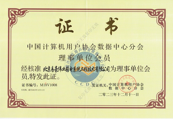 中國計(jì)算機(jī)用戶協(xié)會數(shù)據(jù)中心分會理事單位證書